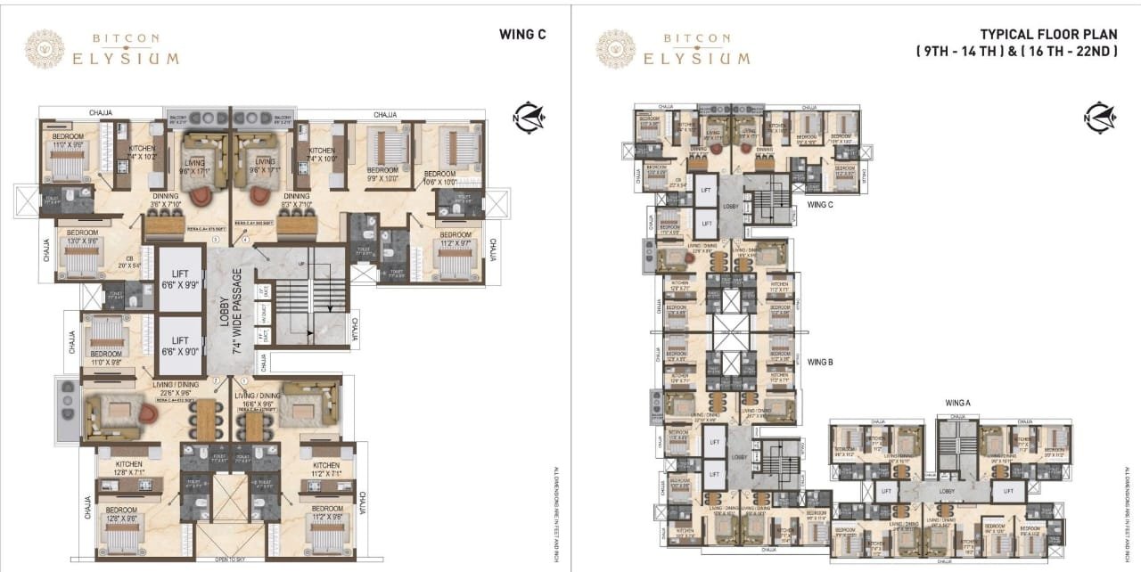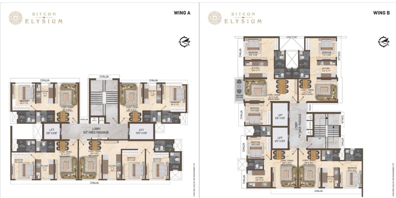 The floor plans at Bitcon Elysium Kandivali are designed for optimal space, airflow, and functionality, offering a mix of intelligently crafted 1BHK , 2BHK and 3BHK flats that align with the needs of urban families, with layouts available in the official brochure and sample flat video to guide your residential decisions.